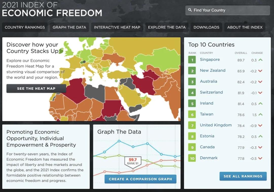 在今年全球權(quán)威的經(jīng)濟自由度評價指數(shù)中,《華爾街日報》和美國傳統(tǒng)基金會發(fā)布的2021年年度報告中,新加坡成為全球最自由的經(jīng)濟體。加拿大弗雷澤研究所最新公布的《世界經(jīng)濟自由度2020年度報告》中,新加坡排名第二。