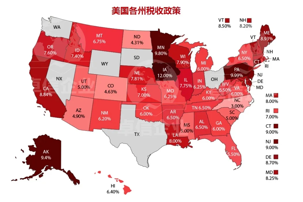 美國有50個州。出于政策原因,每個州對企業(yè)的稅率都不一樣。所以在注冊美國公司的時(shí)候,選擇合適的辦公地點(diǎn),對于合理節(jié)稅會有很大的幫助。